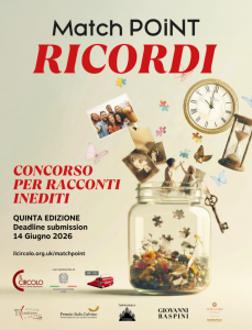 La quinta edizione di Match Point, il concorso letterario promosso dall’associazione Il Circolo in collaborazione con Londra Scrive e sostenuto dal Consolato Generale d’Italia a Londra, celebra nel 2026 il trentennale dell’associazione scegliendo il tema dei ricordi come filo conduttore.